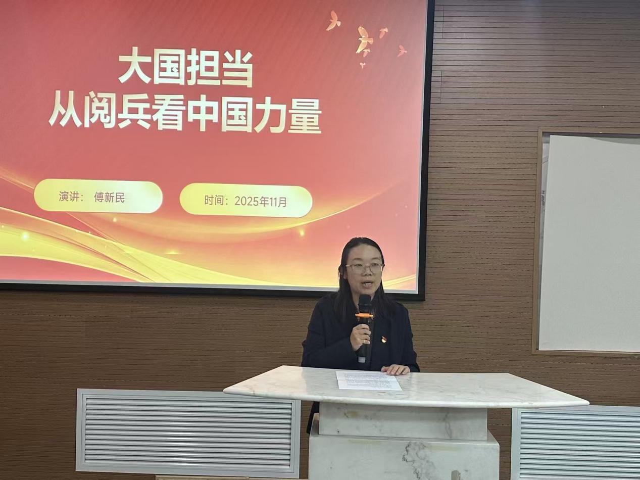 2025年11月5日,公共管理学院党委在田家炳二楼225报告厅举行党员主题教育活动。本次教育活动邀请上海百老德育讲师团名誉团长、中国人民解放军驻上海航天局中心军事代表室原总军事代表傅新民将军(正军级)作题为《大国担当:从阅兵看中国力量》的主题报告。学院全体师生党员、入党积极分子、学生骨干等100余人参加主题教育活动。活动由学院党委副书记王婧主持。